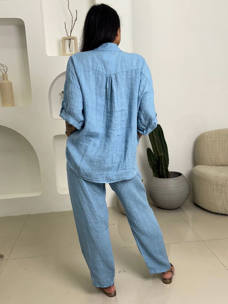 Com design elegante, o Conjunto Melissa – Linho Italiano- Exclusividade Fiorinda se destaca por seu elástico com cordão, que proporciona ajuste confortável e prático, garantindo liberdade de movimento ao longo do dia. Além disso, sua composição facilita a combinação com outras peças, tornando-o ideal tanto para ocasiões formais quanto para produções casuais.